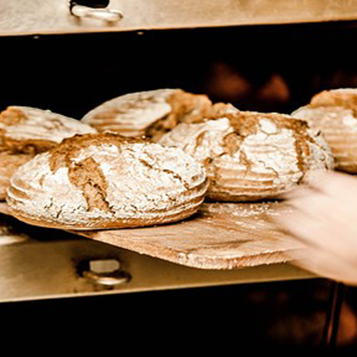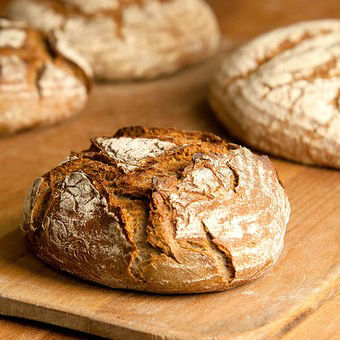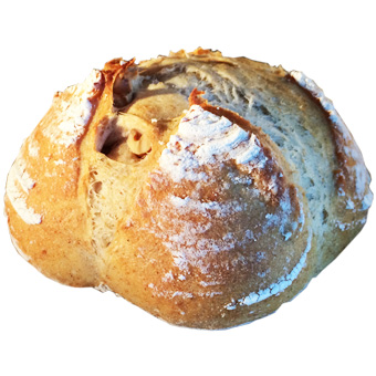 小麦全粒粉、ライ麦をブレンドした生地を低温で長時間醗酵させて焼いた本格派の石窯風パン。