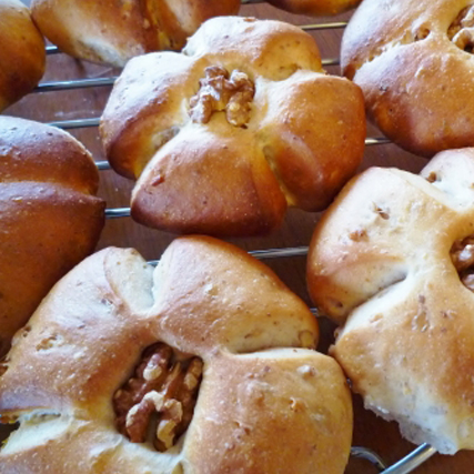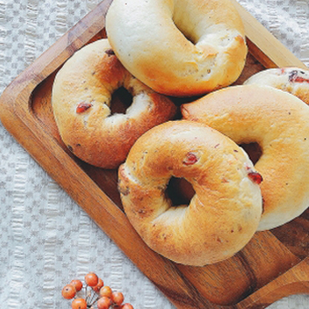 米粉をブレンドした、ふんわり、もっちりの食感が絶妙の基本生地。チーズ、くるみ、レーズンなど種類も豊富です。 -