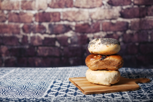 米粉をブレンドした、ふんわり、もっちりの食感が絶妙の基本生地。チーズ、くるみ、レーズンなど種類も豊富です。 -